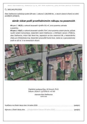 Zveřejnění záměru NÁKUPU POZEMKU k.ú. Staňkovice u Uhlířských Janovic